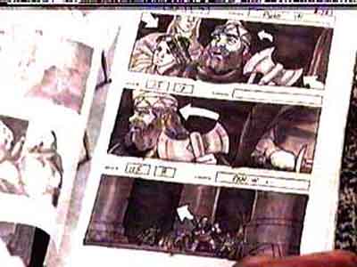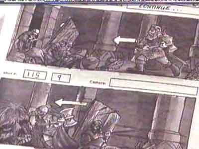 Many films have a special feature which shows the original storyboard alongside the finished movie. For example, this clip from The Lord of the Rings of "A storyboard-to-film comparison of the Nazgûl attack at Bree."